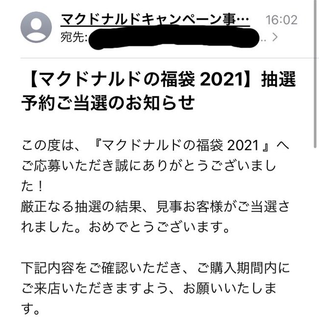 マック福袋21当落 マクドナルド福袋 抽選結果 当選発表 当選メールが届く 当たった 外れた まとめダネ
